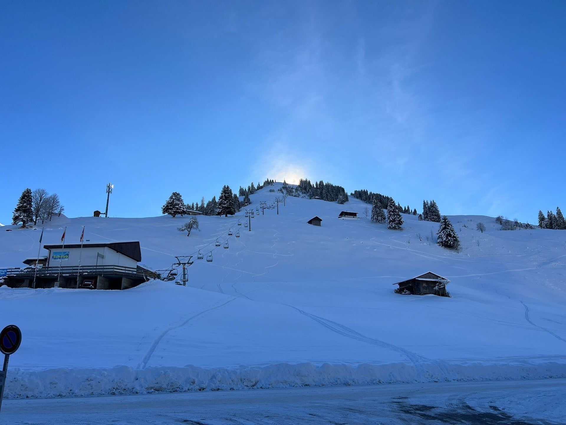 Umrahmt von markanten Berggipfeln als Talabschluss, befindet sich das heimelige Hotel auf 1200 m.ü.M. unterhalb der Talstation der Grimmialpbahnen.